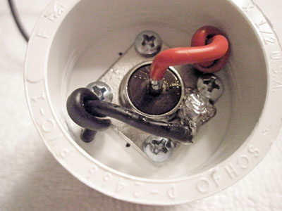 top-side of the PVC end cap go the three eye bolts, two for the antenna